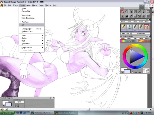 畫布乾下去(我沒有說髒話呀大人~囧)代表眼前所見的這些部份只能與新筆畫疊出更深的顏色而不會被蓋過~