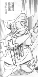 目前(第2集)台詞數=0(會不會說話還是個謎囧),也許有個妹妹跳入鎔爐、自己身體變成兵器的過去?XD(毆)