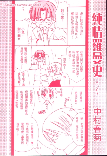 (這部作品不只講秋彥和美咲,同時還進行另一對--秋彥的好友弘樹的愛情故事,然後第5集又出現一個新配對......真是充滿薔薇色的生活圈呀...XD)